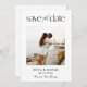 Photo wedding save the date featuring modern minimalist typography in black and white colour