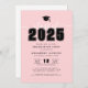 A sleek and modern graduation party invitation featuring "Class of 2025" in large white text at the top, set against a blush pink background for a soft and stylish look. A customizable graduation cap icon sits just above, tying into the theme. Below, the graduate’s name and event details are displayed in clean, modern fonts for an easy-to-read layout.