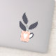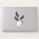 Simple modern clean style of design with a teacup and pot plant. Homely and cute. Fun simple life design. Green, pink and grey in pastel colours.