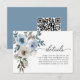 Simple Modern QR code Dusty Blue Floral Wedding Enclosure Card