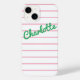Introducing the modern iPhone 14 case designed with thin pink stripes and a fun retro-style name in green. This case not only adds a pop of personality to your device, but also provides reliable protection against scratches and drops. The slim design allows for easy access to all ports and buttons, while the raised edges provide extra screen and camera protection. Upgrade your phone's style and protection with this unique and playful case.