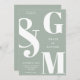Simple Modern Sage Green Wedding Invitation. Features bold monogram typography and minimal graphic design. Personalize text with all the details of your special day.