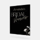 Simple script elegant Bridal Shower acrylic sign. Floral accent, black background.