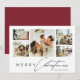 Simple Modern Script Photo Collage Red Christmas Holiday Card