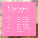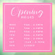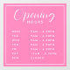 Simple Modern Store Opening Hours pink Window Cling