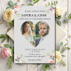 This elegant design showcases a heart-shaped frame with your favourite photo of the happy couple, surrounded by delicate floral accents on a grey background. Perfect for a modern wedding, this invitation combines romance and sophistication, offering a personalized touch that captures the essence of your special day.