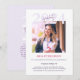 Elegantly minimalist pink and purple graduation announcement card. It's a colour palette that talks about scholarly achievements, intellect, passion and regality. Here, a clean typography meets a chic photo style. Perfect for high school or college grads. Simple, modern, stylish! Celebrate their achievement with our exquisite fully customizable graduation invitation! Customize and buy now!