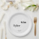 Trendy bold bride and groom names simple minimalist black and off white personalized wedding paper plates with a big ampersand. ++++++++++++ Suitable for contemporary casual style rustic modern weddings.