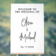 Modern minimalist wedding welcome sign featuring simple script calligraphy typography.