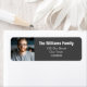 Étiquettes d'adresse modernes avec votre photo de diplômé et les détails de l'adresse de votre famille en texte blanc sur fond gris charbon. Conçu par Thisisnotme©