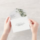 Enjoy a minimalist faded watercolor greenery & eucalyptus illustration combined with an elegant calligraphy typography. This all-in-one sustainable invitation would save you money, no need to include RSVP envelopes, your guests will tear away the last panel and mail it back to you as a postcard.