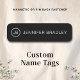 This custom design features a simple monogram in a circle on the left with a personalized name next to it in white text on a black background. Personalized by editing the text in the text boxes #nametags #company #business #officesupplies #personalized #smallbusiness #custom #bosslady #girlboss #ladyboss #bossbabe #marketing #promotion #design #designer