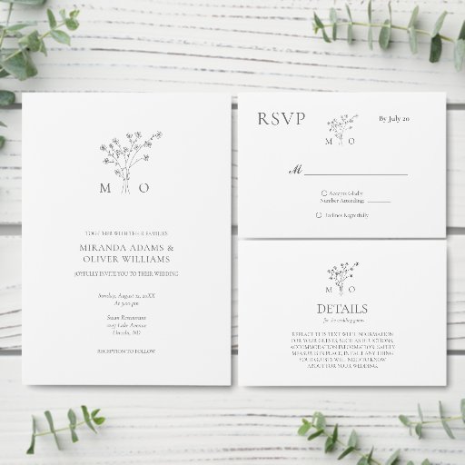 Simple monogram floral bouquet wedding programme program