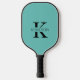 Simple Monogram Name Black and Turquoise Pickleball Paddle