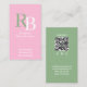 Simple Monogram QR Code Pink | Connect with Me Business Card