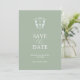 Announce your engagement with this modern save the date card. It features a mix of classic and script typography in white over a solid sage green background. Enter the bride and groom's monogram in the centre of a pale blue crest. All the colours can be customized to suite your wedding colour palette. Use the template fields to personalize with your name and wedding date. Choose from a variety of quality card stocks. My favourite for this is pearl shimmer. Mix and match with many of my designs to create your customized wedding theme. A sophisticated and elegant design for weddings and engagement announcements. To see the matching wedding stationery suite visit www.zazzle.com/dotellabelle