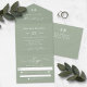 Simple Monogram & Script Leaf Green Wedding All in One Invitation