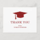 Classic graduation thank you postcard featuring a simple and minimalist design with a grad cap along with the graduate's name in bold dark red over a white background. The backside has your return address and personal message, or you may delete the template if you wish to handwrite your message . A traditional design with a masculine touch perfect for a boy graduate.