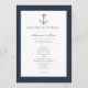 Guide your guests through your special day with this Navy Blue Simple Nautical Anchor Wedding Program, featuring a classic anchor motif and elegant coastal chic design. Perfect for maritime and beachside ceremonies, this program blends elegant script with modern typography to beautifully highlight the bride and groom’s names, ceremony order, and special details. The simple yet sophisticated layout complements any coastal or nautical wedding theme, creating a polished finishing touch to your big day. A must-have piece of nautical wedding stationery for your seaside celebration.