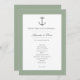 Guide your guests through your special day with this Sage Green Simple Nautical Anchor Wedding Program, featuring a classic anchor motif and elegant coastal chic design. Perfect for maritime and beachside ceremonies, this program blends elegant script with modern typography to beautifully highlight the bride and groom’s names, ceremony order, and special details. The simple yet sophisticated layout complements any coastal or nautical wedding theme, creating a polished finishing touch to your big day. A must-have piece of nautical wedding stationery for your seaside celebration.