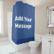 This Navy shower curtain has white display text that you can add or edit to show your custom message.