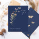 Simple Navy Blue Autumn Fall Wildflowers Wedding Thank You Card