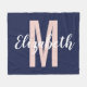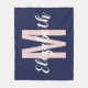 Simple Navy Blue Blush Pink Hand Script Monogram Fleece Blanket