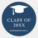 Simple Navy Blue Class Of Year Guy Graduation Cap Classic Round Sticker