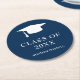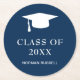 Simple Navy Blue Class Of Year Guy Graduation Cap Round Paper Coaster
