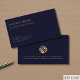 Make a lasting impression with our Simple Navy Blue Gold Logo Business Cards featuring classic traditional typography. The back features a striking gold geometric emblem that can be replaced with your logo, along with space for an industry disclaimer. Perfect for business professionals looking to make a lasting impression.