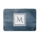 Simple Navy Blue Subtle Marble Modern Monogram Bath Mat