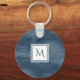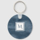 Simple Navy Blue Subtle Marble Modern Monogram Keychain