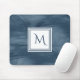 Simple Navy Blue Subtle Marble Modern Monogram Mouse Pad