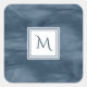 Simple Navy Blue Subtle Marble Modern Monogram Square Sticker