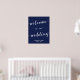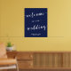 Simple navy blue wedding reception sign print with customizable text - you can add bride's and groom's name and wedding date. Dimensions of the sign print (poster) are 22 inches by 28 inches.
