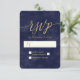 Simple Navy Watercolor & Gold Foil Wedding RSVP Card