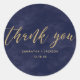 Simple Navy Watercolor & Gold Monogram Wedding Classic Round Sticker