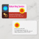A vertical grey layer (the night) intertwines with the horizontal red (the day). The blue moon watches over at night with a gold pacifier and is partnered by the orange sun during the day. At the top of the card is your business name "Babysitting Service" in pink which you can change with your prestigious name and contact details at the base.
