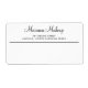 Étiquettes d'expédition moderne avec un design simple avec votre nom d'entreprise dans un élégant script noir et deux lignes de texte pour votre adresse de retour dans une police sans serif, sur un arrière - plan blanc. Une ligne mince sépare l'espace ci-dessous où vous pouvez écrire l'adresse de votre client à la main. Ces étiquettes d'expédition minimalistes et chics sont un excellent moyen d'ajouter une touche professionnelle à vos colis.