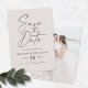 Simple Off-White Gardenia Ivory with Script Photo Wedding Save The Date Cards. This modern yet classic design is minimalistic and elegant with a simple solid colour and beautiful calligraphy signature script text. Shown in the new colorway. Also features an optional custom couple's photograph on the back side. Or simply hide the layer to have a solid background instead.
