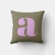 Simple Olive and Lilac Bold Retro Monogram Initial Throw Pillow