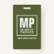 Custom make your own photo employee badges with this professional monogrammed logo. Logo has a modern, and simple design with dark olive green and white colour combination. It features 2 letter initials and names inside a square. It is versatile and easy to customize and transfer on to other office and promotional products. It can also be used as a personal monogram by omiting the type of business or tag line at the bottom.