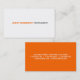 If clean and modern is your style, why junk up a card with complicated patterns or imagery that says nothing about your business? Simple, yet elegant type is the focus of this card with a bright orange for accent. Available in alternate colours.