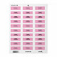 These pale pink labels have two lines of black text. The top line is for a name. The bottom line is for a phone number. All text can be edited or deleted. These phone number labels are perfect for labelling your child's items for school.