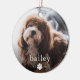 Simple Paw Print Dog Photo Christmas Ceramic Ornament is a stylish modern holiday ornament with your dog's name featured in classic typography in white over your full size photograph.