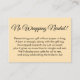 If you're hosting a no-gift-wrap display shower for a bride-to-be, this simple, elegant card could be the choice for you. Using an elegant script font, I first added a header that reads "No Wrapping Needed!" on the front, and "Gifted with Love, From:" for the gift tag side. A template field was set up to offer instructions for guests not wrapping their present; please feel free to change the wording if needed. All fonts and colours can be modified as you see fit.