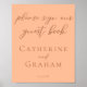 This pretty peach poster is the new trending colour for summer brides. Our sweet peach wedding guestbook sign features elegant light brown script for a trendy, minimalist event in the afternoon for a feminine bride who loves to stay current and modern. Please sign our guest book.