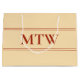 This peach gift bag has red text. You can edit it to show the correct monogram. Red lines are above and below the text.