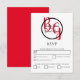 This design features an elegant yet simple arrangement of the bride's and groom's personalized initials. The couples names are encircled with a black ring and placed on top of the bride's and groom's first name initials which are displayed in red colour typography. This red, black and white design is simple yet elegant in every way. The reverse displays a red colour background. The combination of colours creates a sophisticated, trendy and chic style. Elegant wedding RSVP response card design with modern elements. The simple setup of the typography gives it a distinct style. Matching wedding invitations and other stationery items are also available.