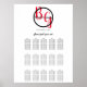 This design features an elegant yet simple arrangement of the bride's and groom's personalized initials. The couples names are encircled with a black ring and placed on top of the bride's and groom's first name initials which are displayed in red color typography. This red, black and white design is simple yet elegant in every way. The combination of colors creates a sophisticated, trendy and chic style. Elegant wedding seating chart design with modern elements. The simple setup of the typography gives it a distinct style. Matching wedding invitations and other stationery items are also available.